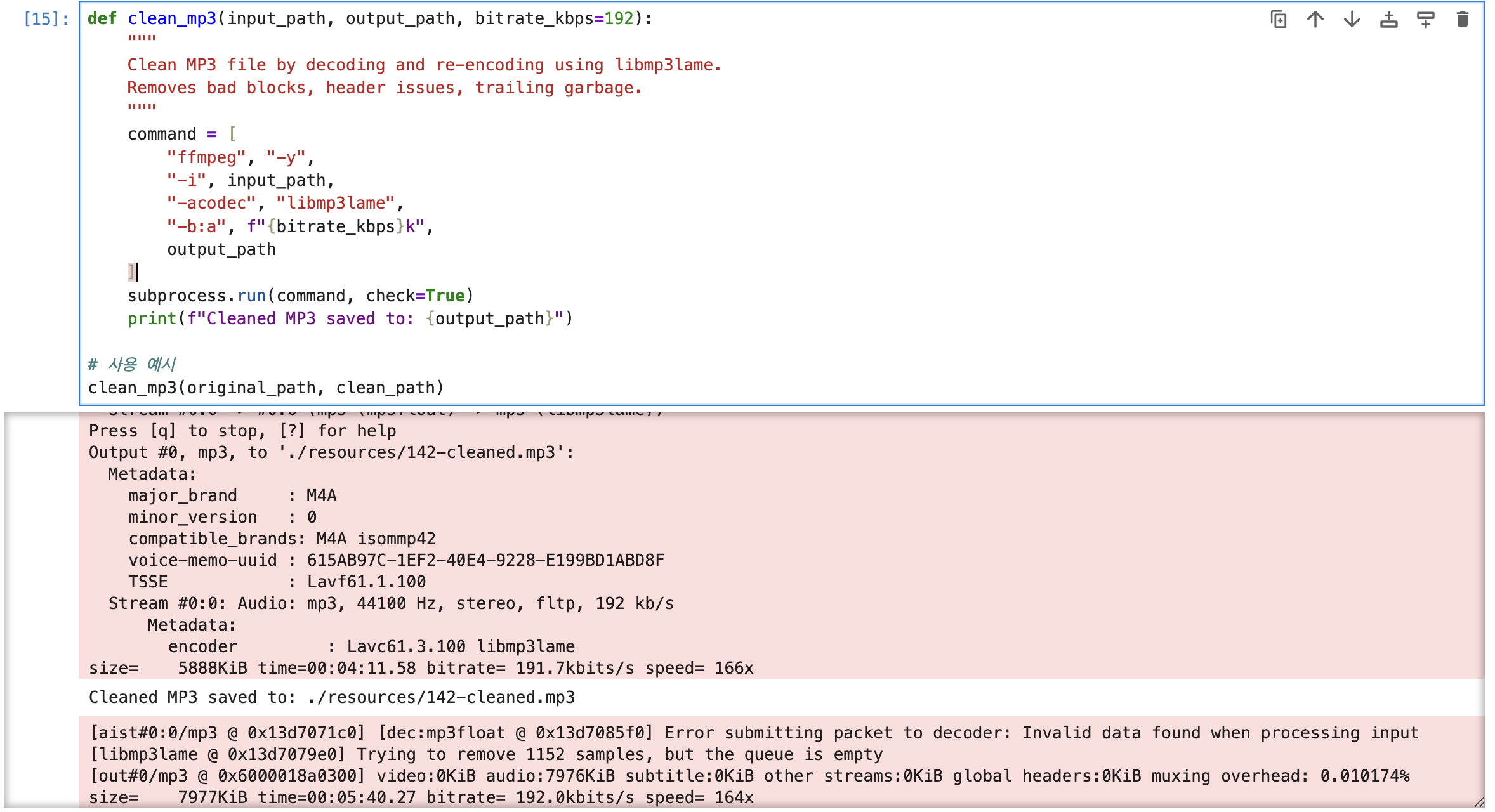 앞선 사례와 이번 사례를 통해 정상적으로 재생되는 MP3 파일이라도 내부적으로 문제가 있을 수 있다는 사실을 알게 되었습니다. 이슈 해결 이후 오디오 수집 파이프라인에 검증 프로세스와 필요한 경우 재인코딩을 하는 절차를 추가하여 같은 사례가 재발되는 것을 방지했습니다.